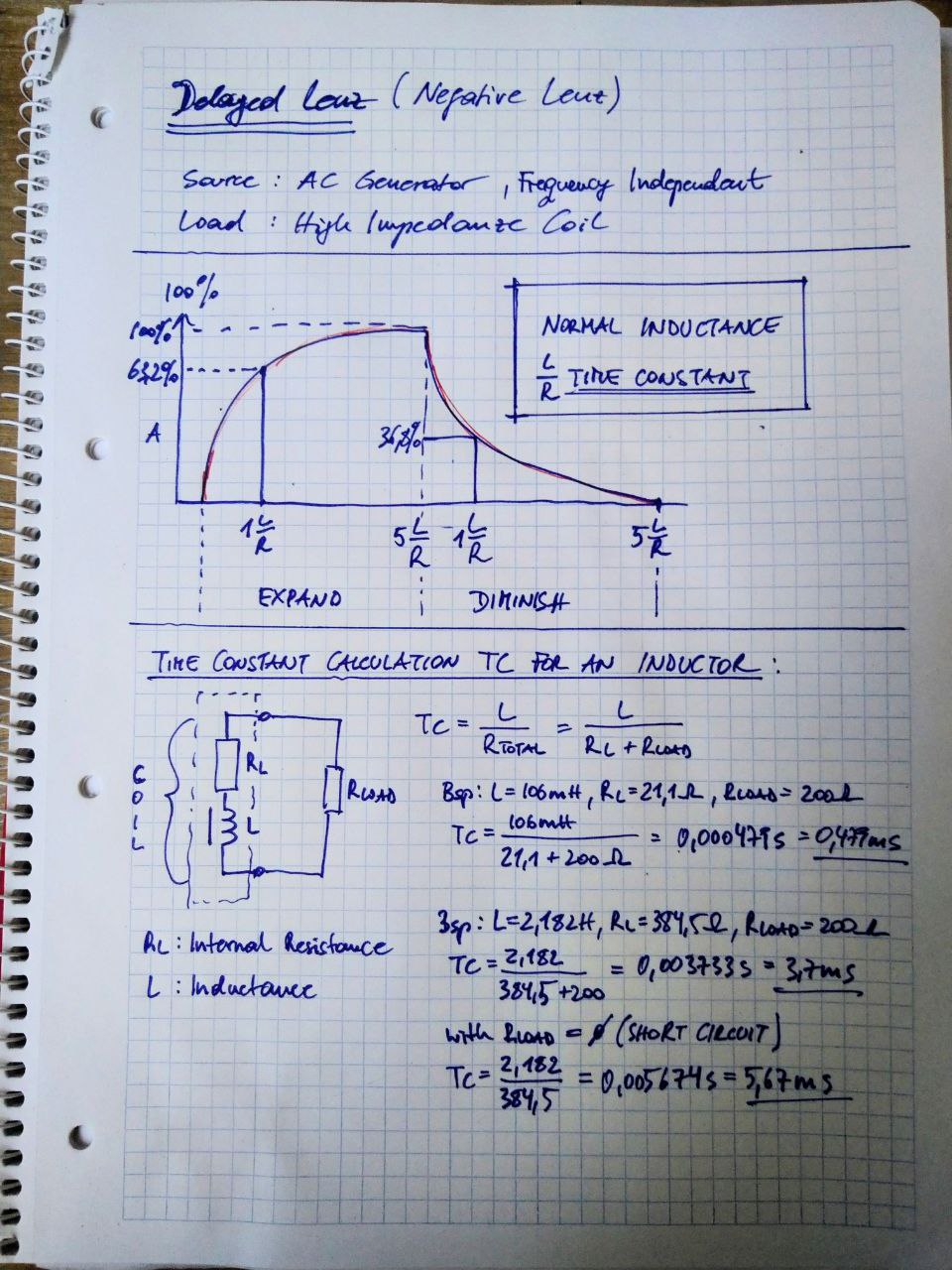 My approach is similar but i start with some non-complicated math. Goal is to know how much delay a coil system should have to benefit from this effect. Therefore we have to measure the ohms and henry from a coil to calculate the time constant T which plays a key role here.