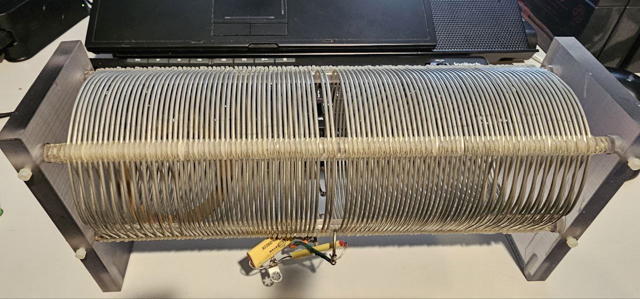 The first experiment will be to verify, with two 60-turn 2.25-inch PVC coils, what one reel can transmit to the other without a transformer effect, using different coil placements like the one he gave as an example often described in his books. Just a transmitter and a receiver coil.