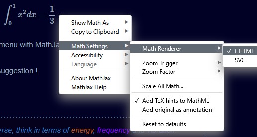 If you right-clik on the formulas you'll see a menu with MathJax options and a description of the feature in the Help section.