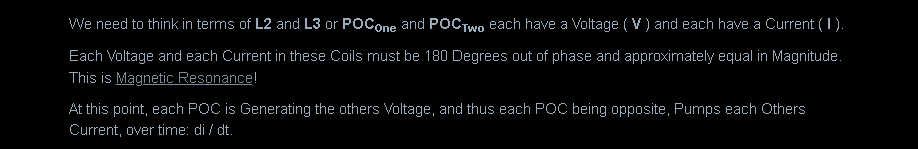 does anyone understand why and could explain how a repetitively DC pulsed coil assembly adheres to resonance, when the purpose of the pulses in a 3 coil assembly is to regauge the potential on the POCs to make them self-act through mutual action during offtime?