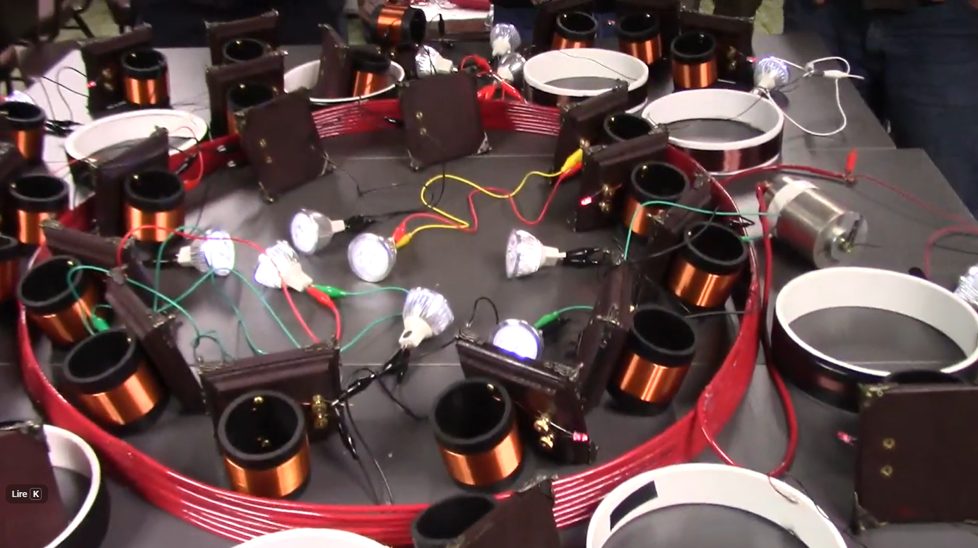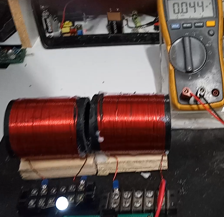 The first experiment will be to verify, with two 60-turn 2.25-inch PVC coils, what one reel can transmit to the other without a transformer effect, using different coil placements like the one he gave as an example often described in his books. Just a transmitter and a receiver coil.