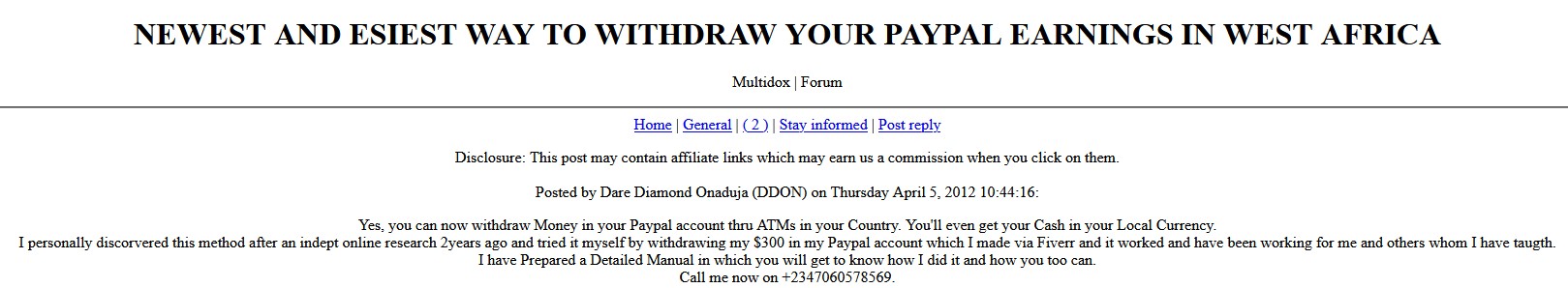3. As we can see here you're also selling manuals on how to withdraw money from PayPal in West Africa; very diverse activity, I wonder when you're doing all these how did you had time to study, experiment and find the secrets of Don Smith's generator ? It's a miracle, right ?