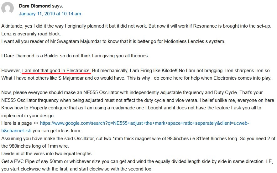 So, Dare Onaduja, you claim you replicated Don Smith's device but got nothing to show so why are you here ? Just to advertise you WhatsApp number on our site ?