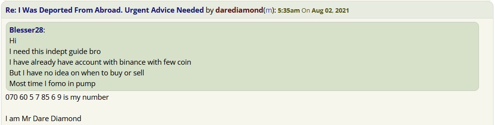 I did some OSINT research and found you're very active on a Nigerian scamming forum.
