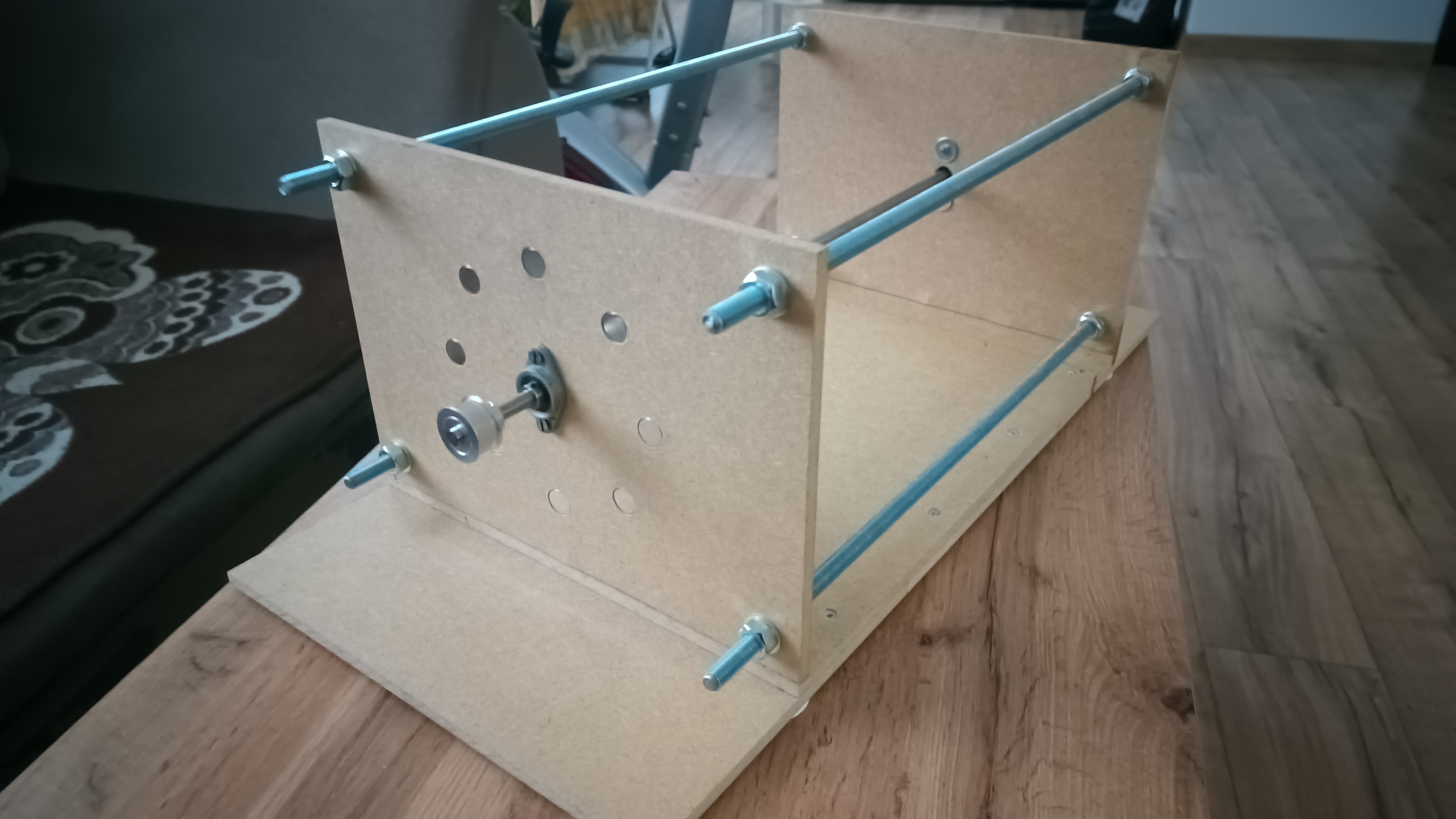 In general, I have made a wooden structure to put it all together. I commissioned a company that laser cuts such things to make metal discs. The first discs will be made of ordinary steel. I designed the coil spools in FreeCad and they are being printed. Now I am waiting for a delivery of silicon sheet metal to make the coil cores.